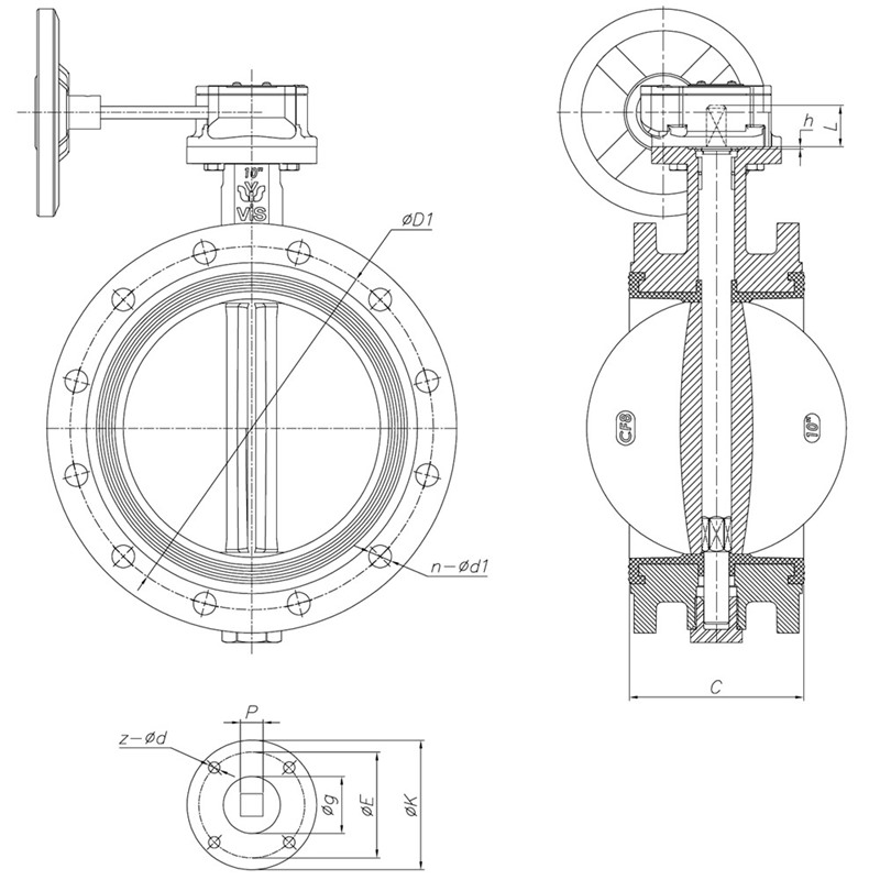 | DN | C | ØK | ØE | Øg | z × Ød | h | L | P | ØD1 | n - Ød1 | ØD1 | n - Ød1 | ØD1 | n - Ød1 | ØD1 | n - Ød1 | ØD1 | n - Ød1 | ØD1 | n - Ød1 | kg |