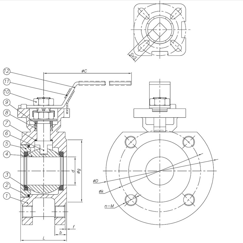 | DN | Ölçü | L | d | H | C | ØD | ØK | Øg | b | f | n - M | ISO 5211 | SxS | N.m | kg |